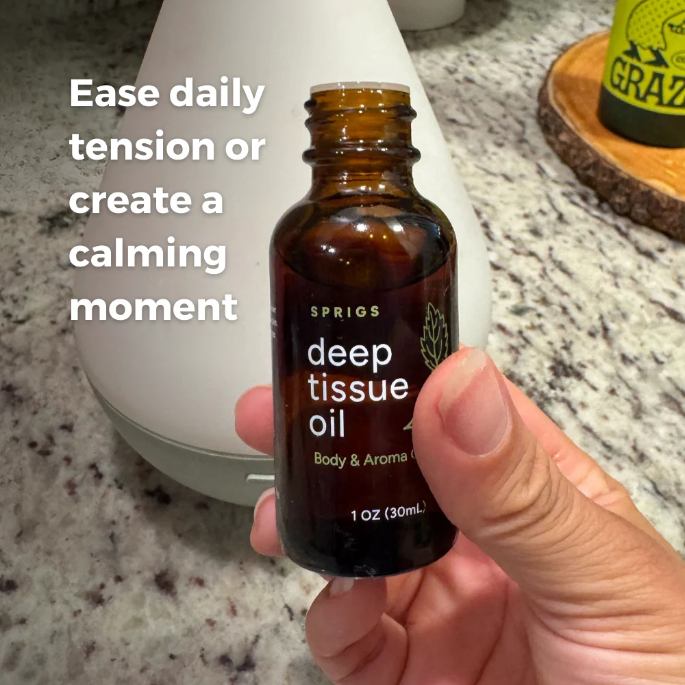 After a long day’s work, nothing is more relaxing for your muscles than a massage. Deep Tissue Oil is a natural body and aroma oil that combines warming and cooling botanicals like Wintergreen, Peppermint, and Ginger to help you relax and refresh. Perfect for a soothing massage or as an aromatherapy pick-me-up, it’s a must-have for anyone looking to unwind. Moms especially love it for easing daily tension or creating a calming moment amidst the chaos.