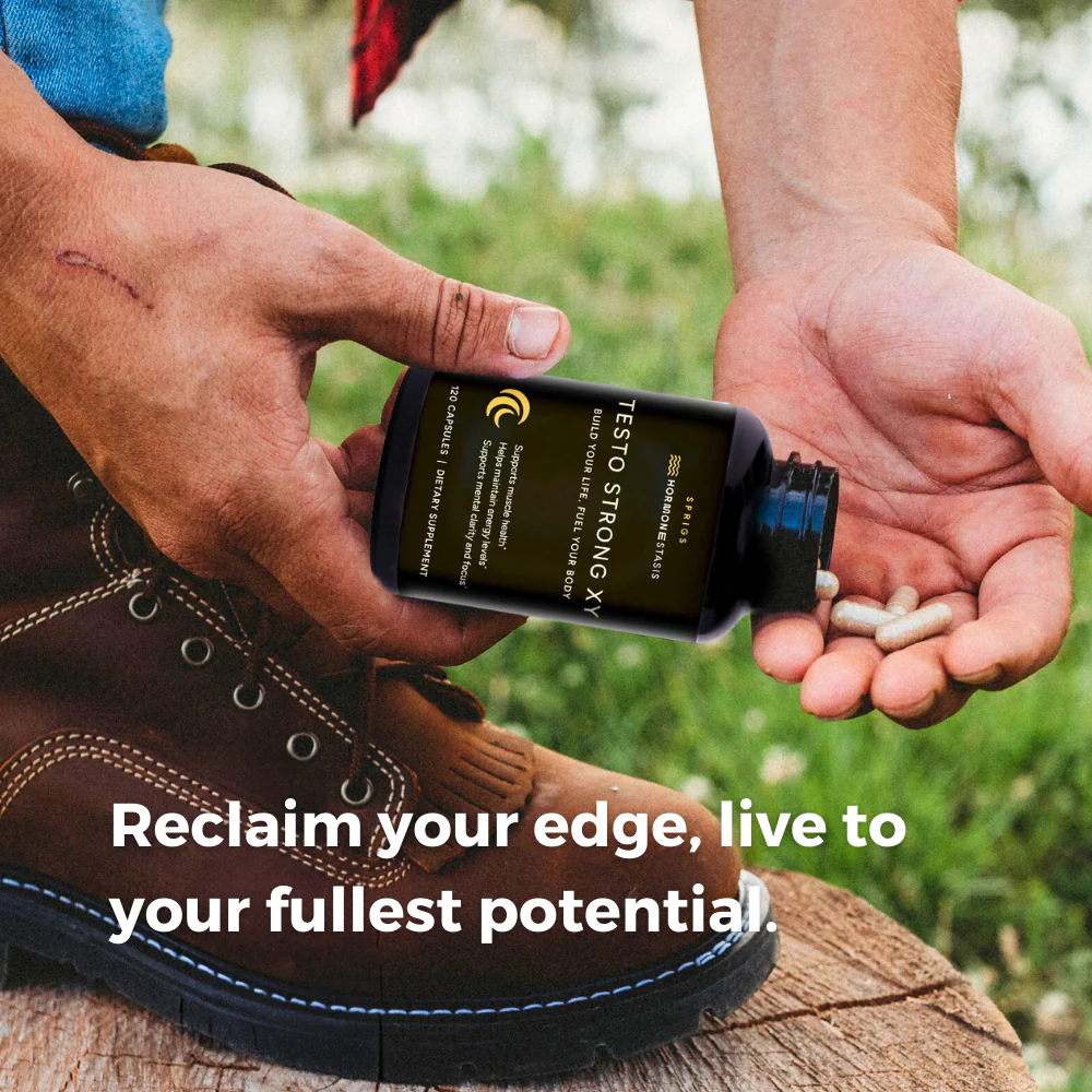 This 3-in-1 powerhouse blend delivers testosterone-supportive herbs, essential magnesium, and adaptogens crafted to fuel your strength, stamina, and mental clarity. Testo Strong XY is built for men facing low energy, diminished drive, and mental challenges. Featuring Tongkat Ali to support healthy testosterone and vitality, along with magnesium to support muscle and nerve function, it helps you reclaim your edge. Adaptogens like Ashwagandha sustain steady energy under pressure, while Saw Palmetto supports healthy prostate function. Testo Strong XY gives you that Herbal Edge!